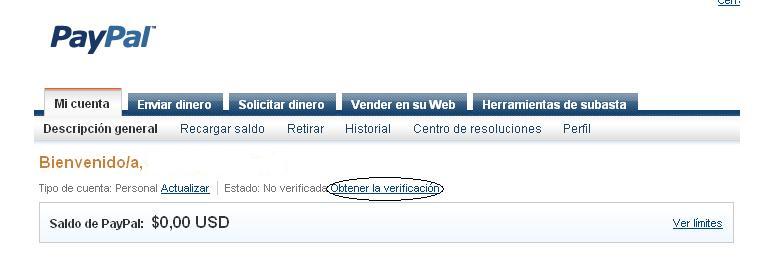 *Al ingresar a su cuenta paypal ingresar en la opción obtener la verificación.