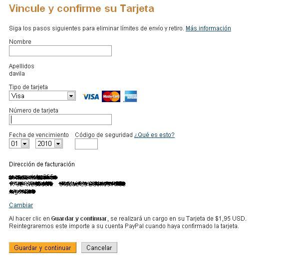 *Luego de que les fuera enviado los ultimos 4 digitos ingresan a su cuenta paypal y lo agregan para tenerlo verificado en unos segundos.